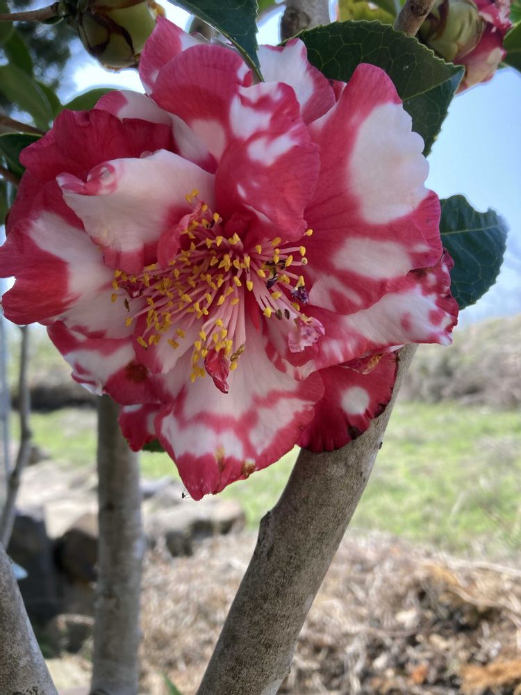 もう、終わりかけなのですが、一枚目の花は白がたくさん入った椿です