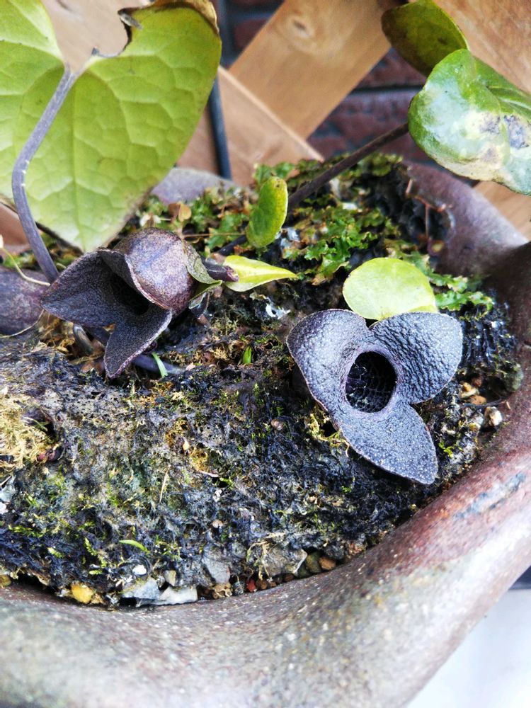 <地道投稿>連投です🙏🙇1️⃣新潟県村上市朝日館(隣の産直店)で購入五年目「コシノカンアオイ」開花してました😓2️⃣茶箪笥の上に置いてました「カランコエ」こちらも😊開花してました😓二鉢も😵3️⃣「クンシラン」親子で伸ばしてますが👴俺は叶いませんね🎵