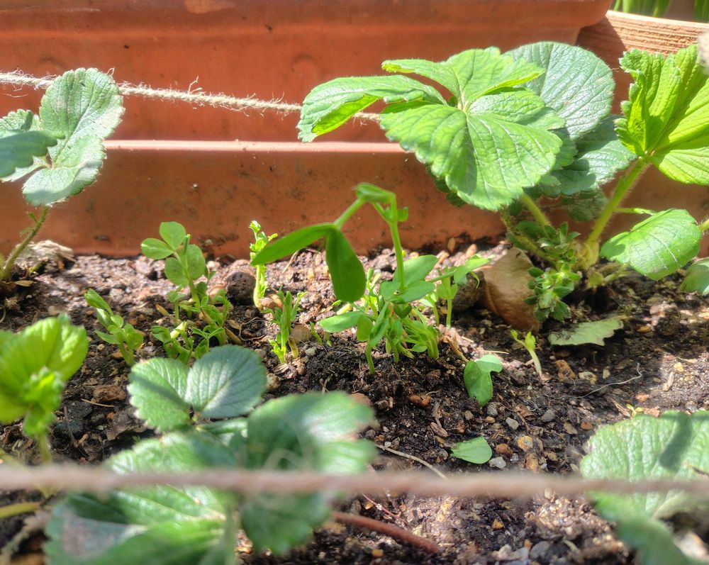 ①②豆苗が意外にもすくすくと伸びてきた😲。