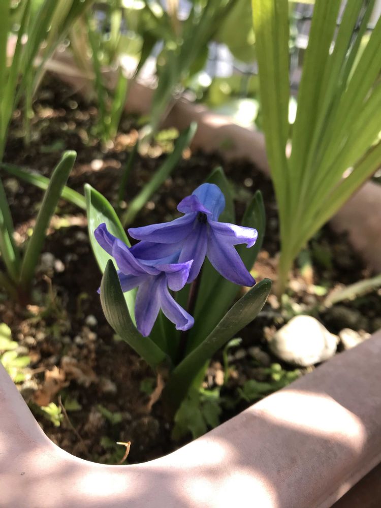 植えた覚えのない花が咲き出しました。ヒヤシンス?