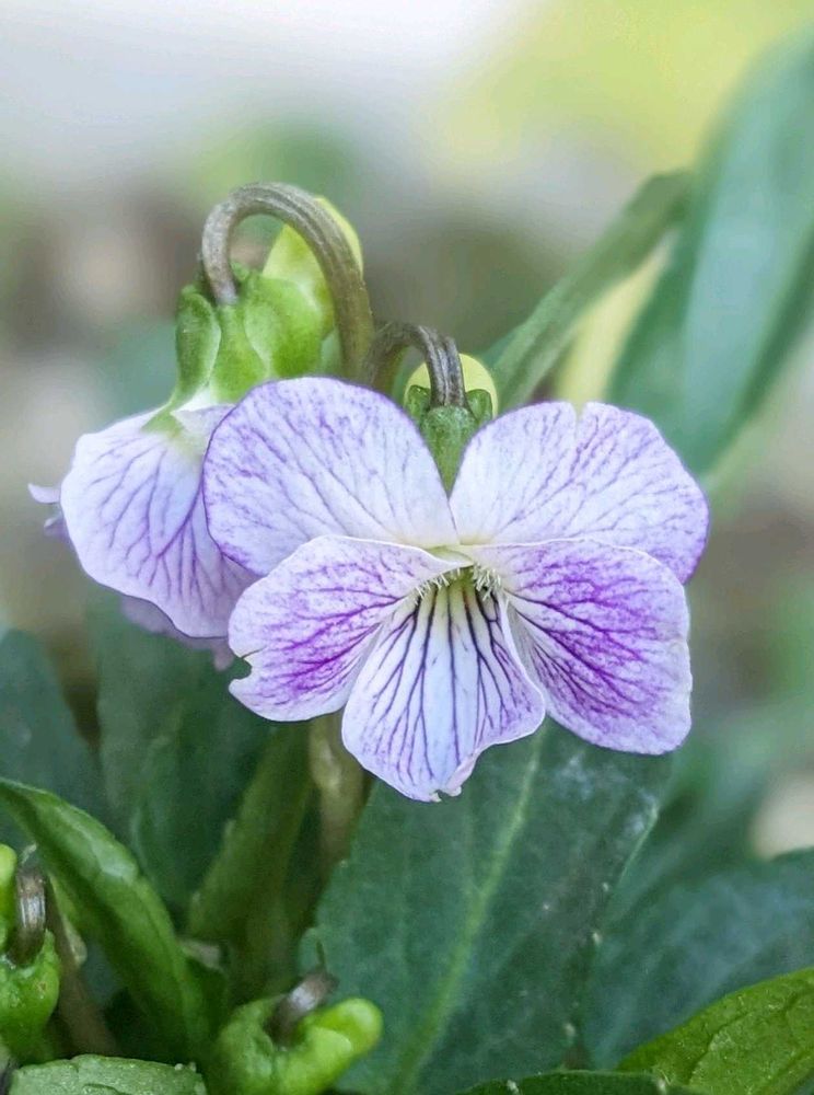アリアケスミレの名前の由来になった有明の空みたいな色と柄が美しくて今年もウットリ眺めています🌿💜😍💜🌿