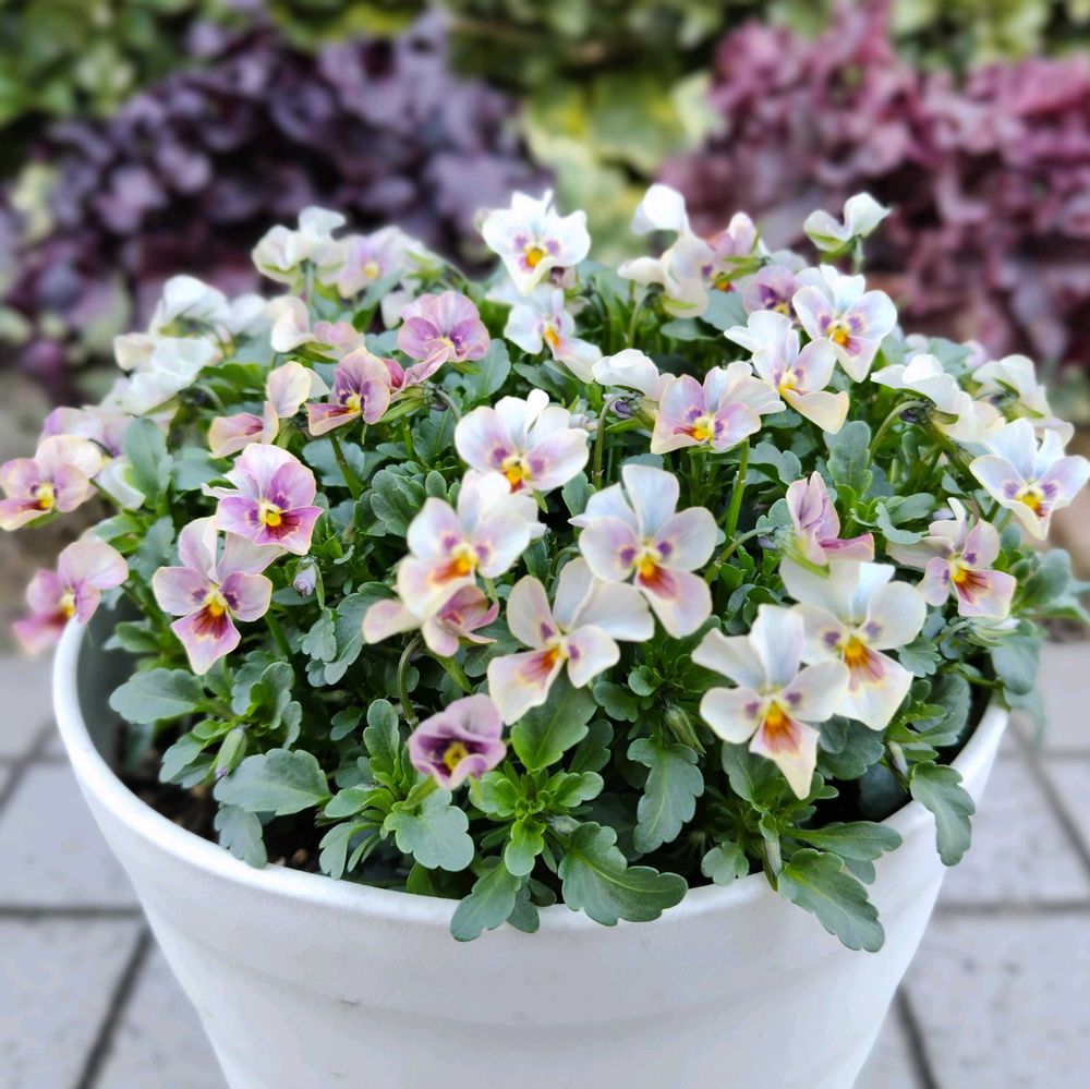 途中で切り戻ししたので花が咲くのが遅れましたけどほんと淡い色合いの小輪のビオラで可愛いです💕