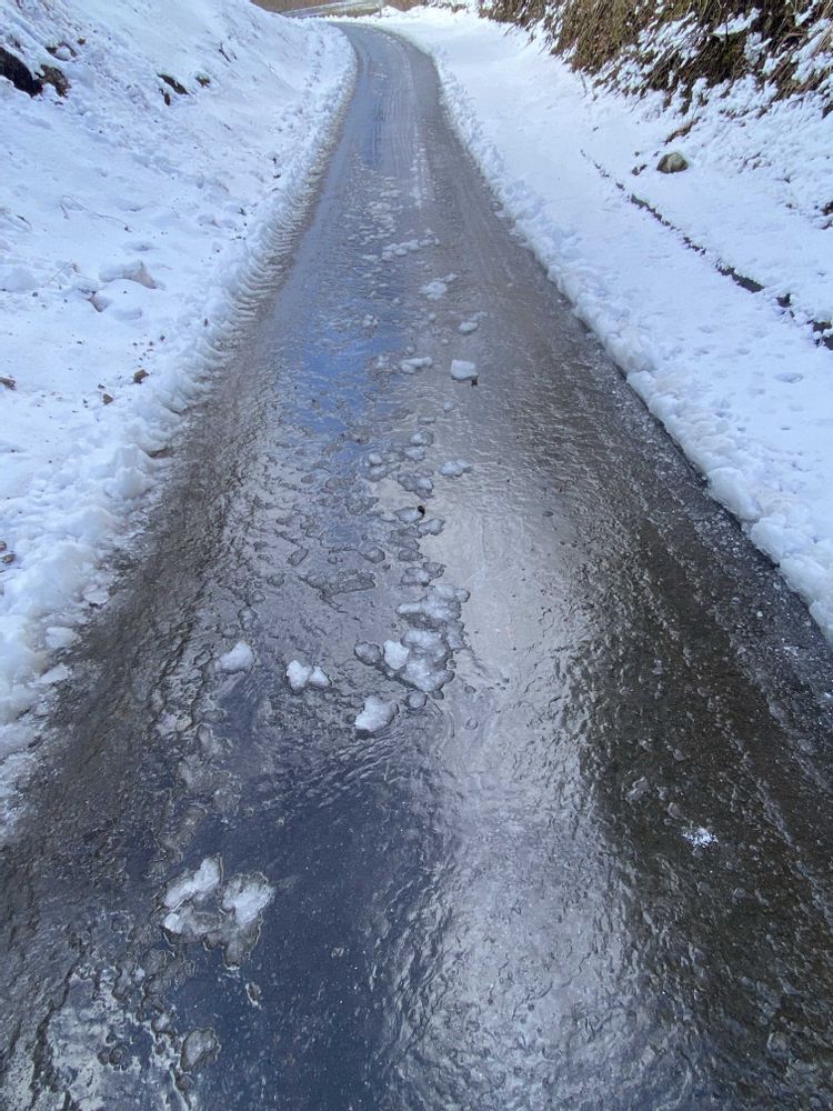道なんて凍ってツルツルとスケートリンクのようでしたよ〜