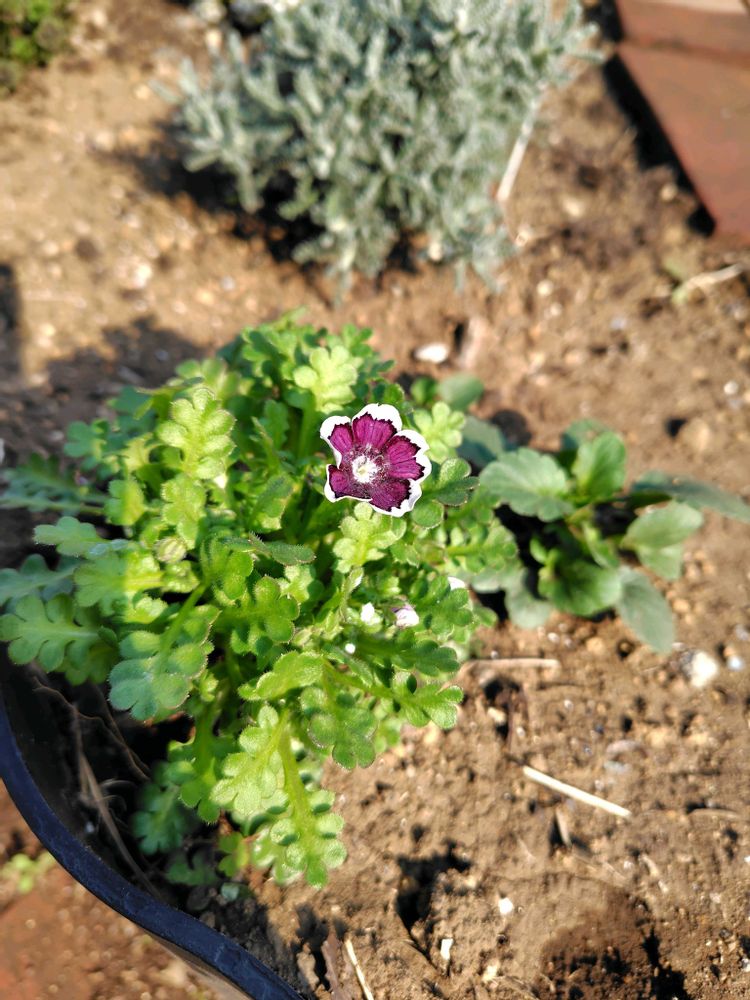 11月蒔きの開花一番乗りはネモフィラペニーブラックでした。