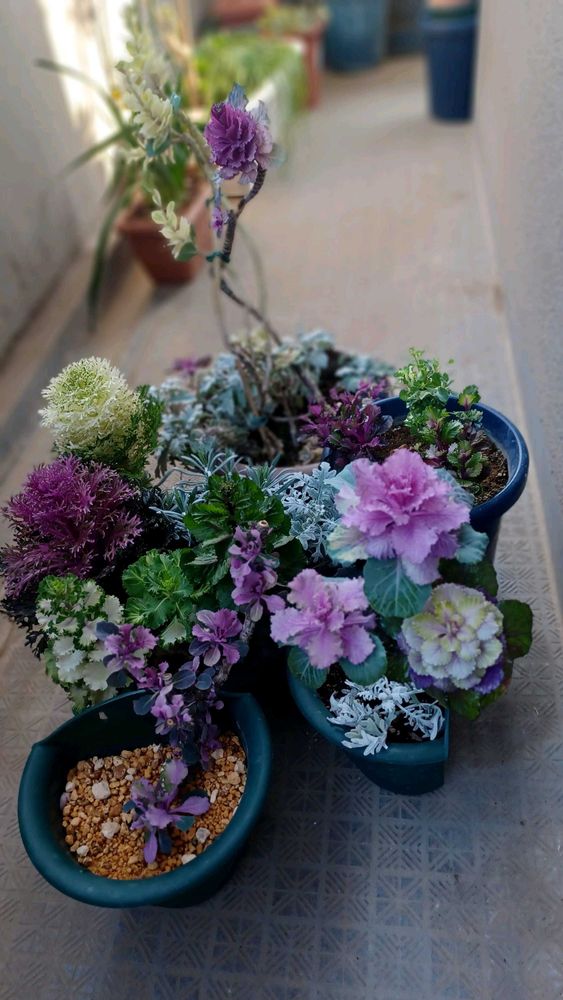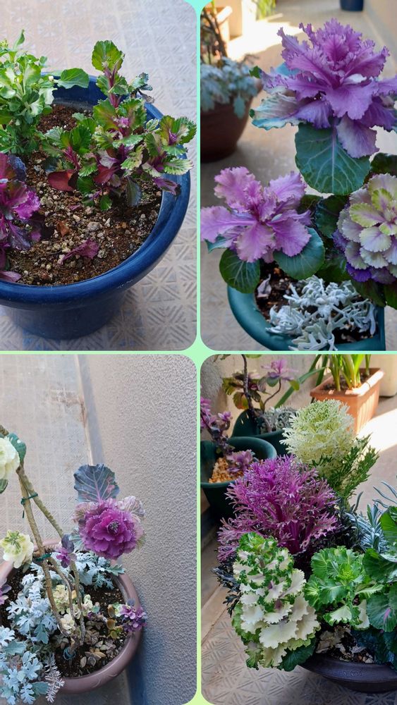 2️⃣右下の鉢が一番新しい去年の葉牡丹💜
