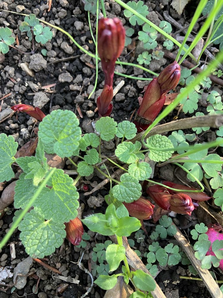 うちの庭の芍薬を確かめたら最後の赤い芽はシャクヤクに似ているような⁈