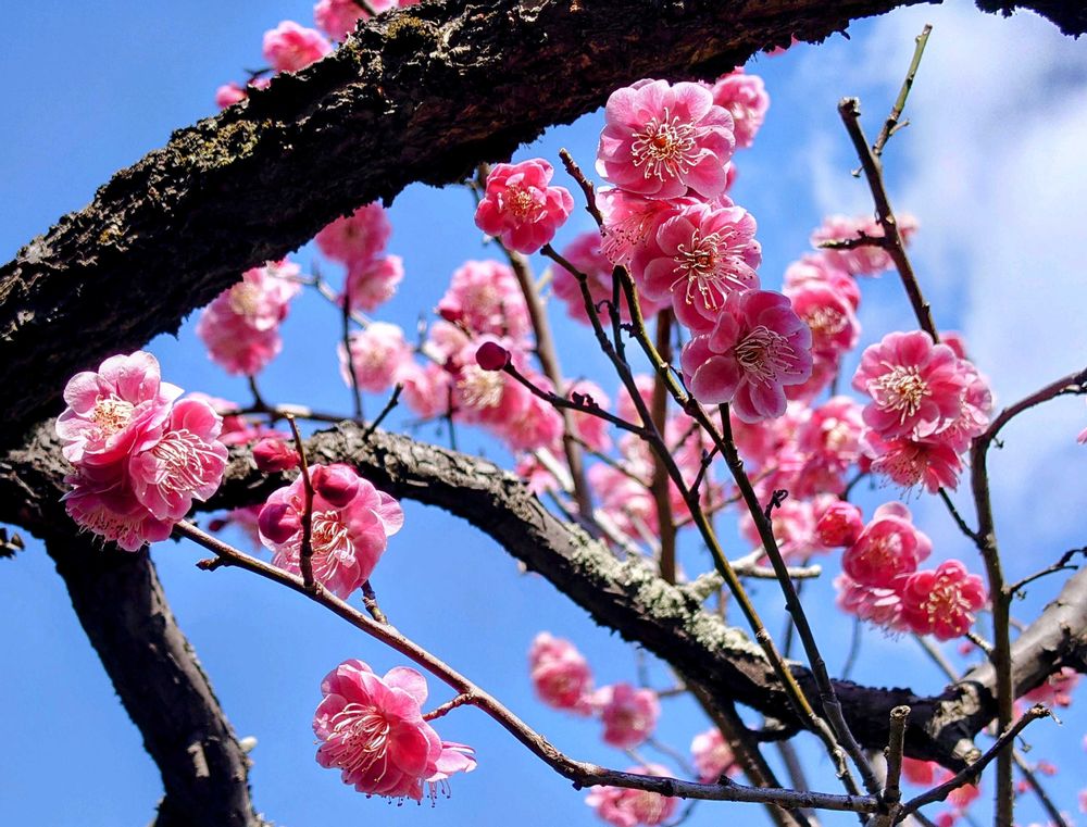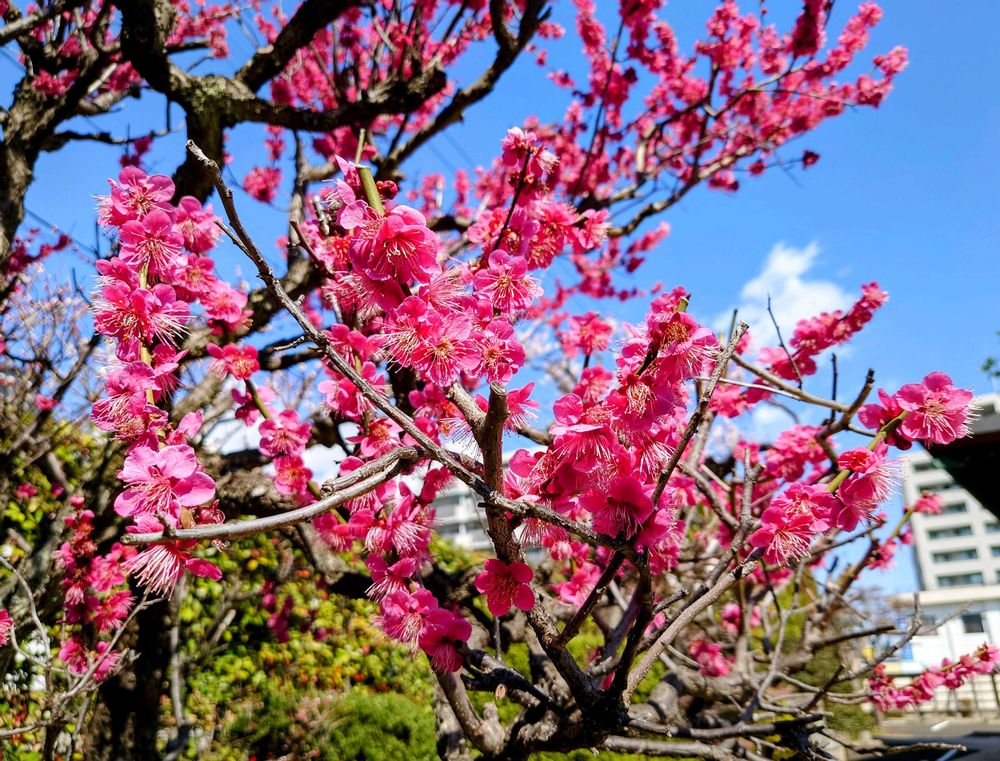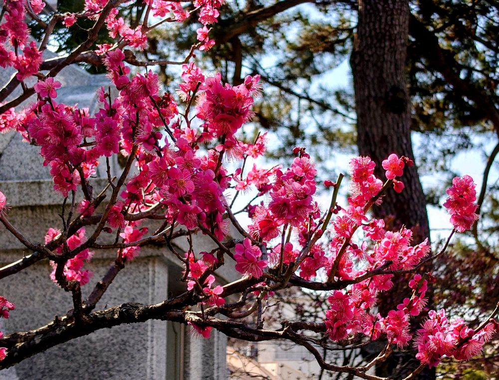 今日の午前、市内を散歩途中に見かけた紅梅をもう一枚。