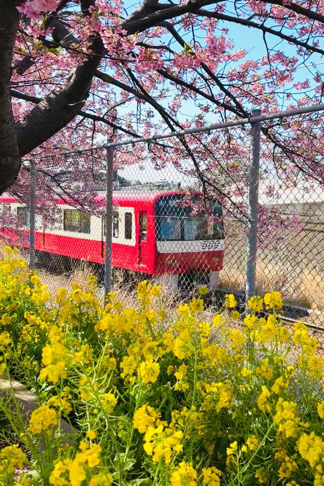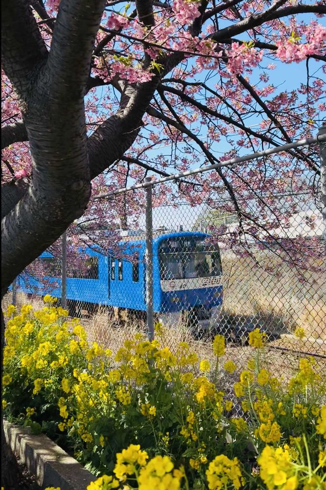 河津桜と菜の花、電車のコラボ素敵ですね💓