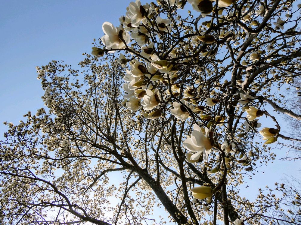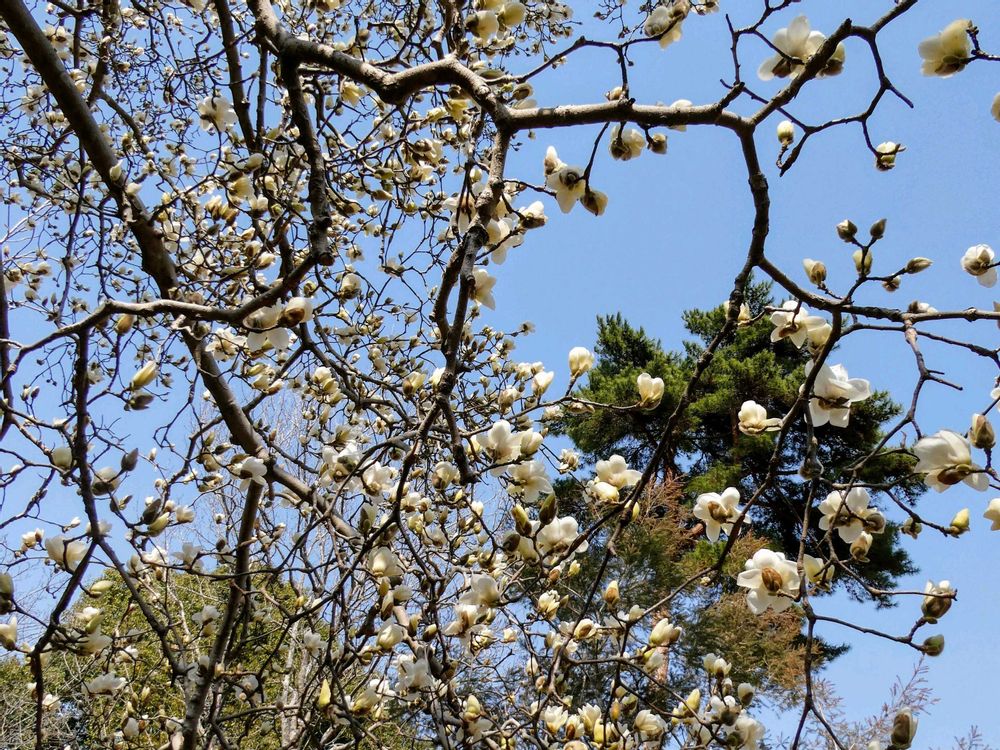 夏日の様な暖かさの中☀優雅に咲いていたハクモクレン(白木蓮)🤍の白いお花が美しかったです😍💖