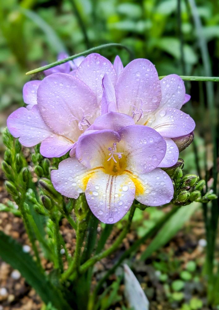 1️⃣ 昨年 花壇で咲いたフリージアです。爽やか色です♡❀