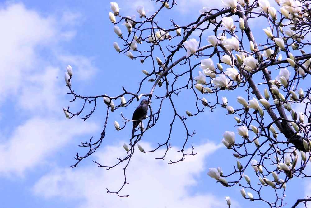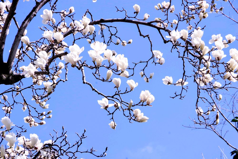 毎年春先に、植物園の青空を真っ白に飾ってくれる白モクレン☀️
