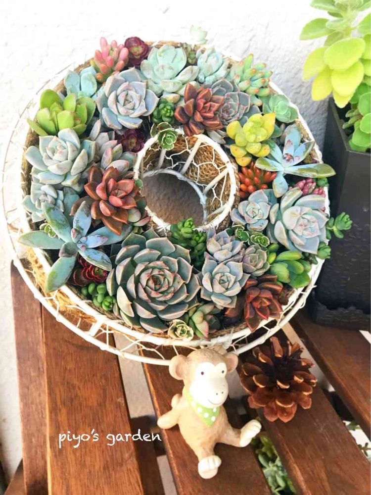 徒長していた多肉リースを仕立て直しをしようと思ったら、全く違う寄せ植えの完成!