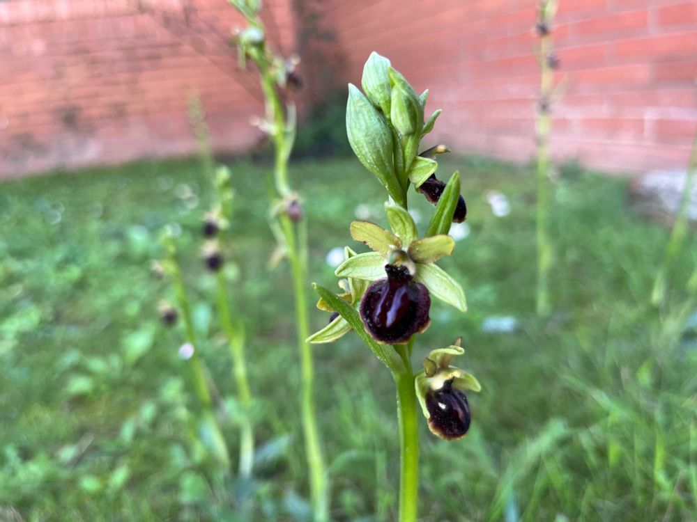 オフィリスの仲間かも・・・ランですよ。花を蜂の雌に似せていて雄が来て花粉を受粉させるようです。