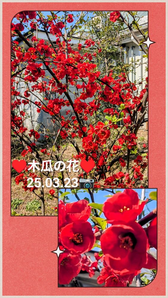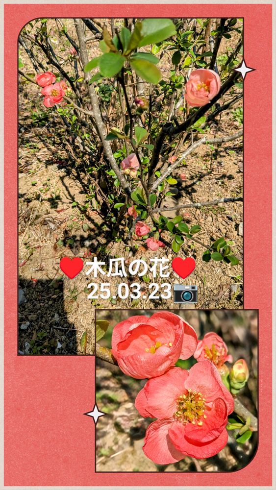 木瓜の花が綺麗に咲いていました♥️🤍🩷