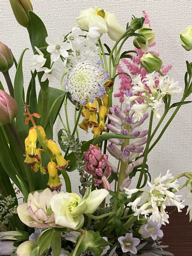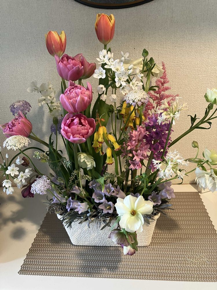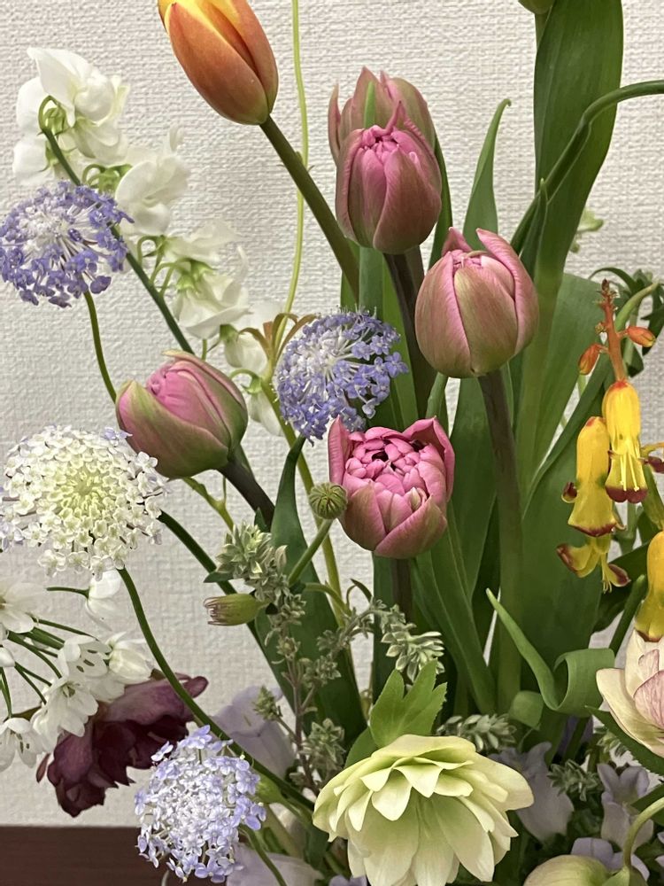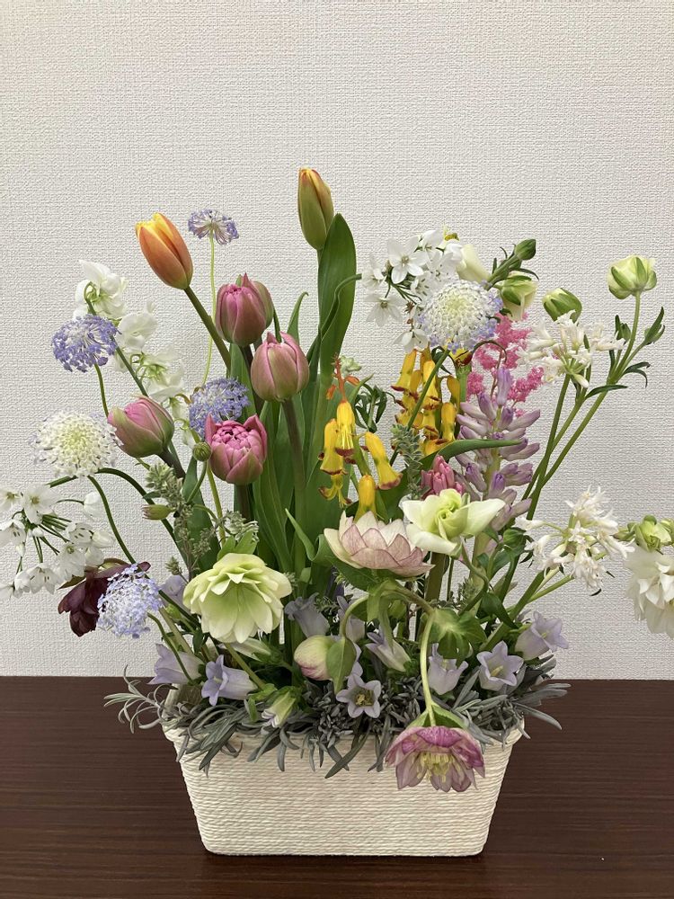 全体にふんわりと、流れるようなラインで、チューリップは真っ直ぐさすことがポイントでした💐