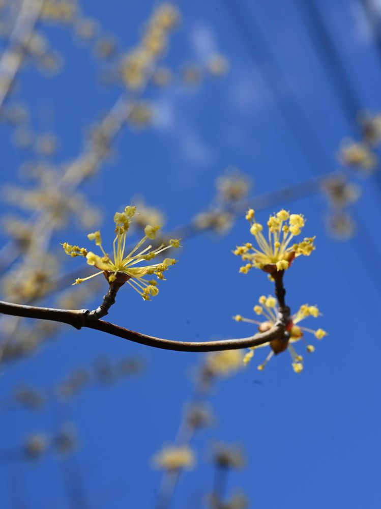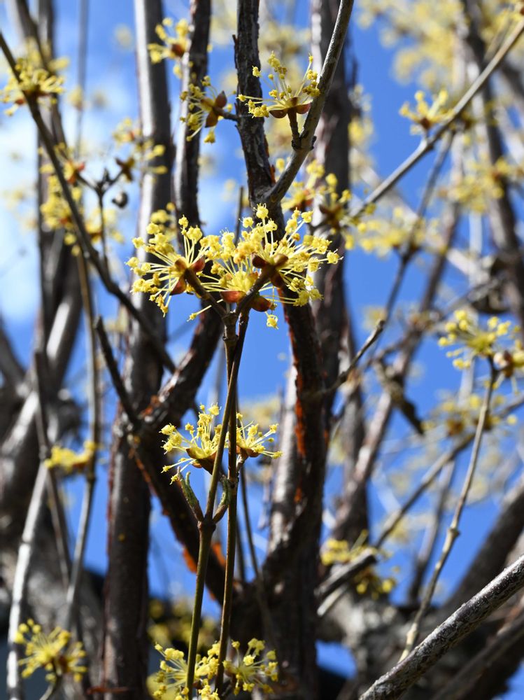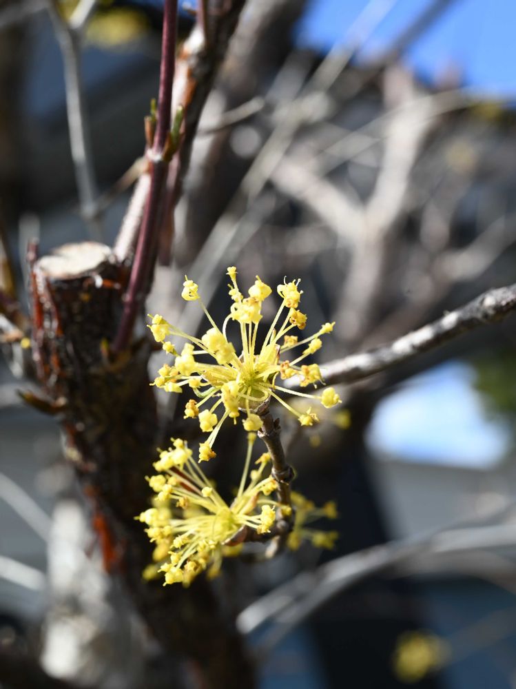 パチパチした可愛い蕊のサンシュユの花が咲き始めましたね、とても可愛いですね😍