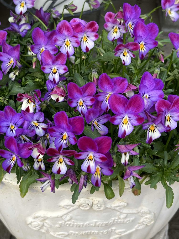 真冬には寒さでしおれていたビオラちゃんを地植えにしておいたら、今になってもりもりෆ.*・゚