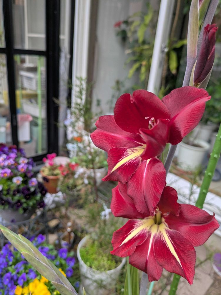 赤いグラジオラスは、ちょっとびっくりな色でした。お察しのとおり、グラジオラスは、植え替えています。なぜなら、別の花を植えてしまうから、掘り上げます。