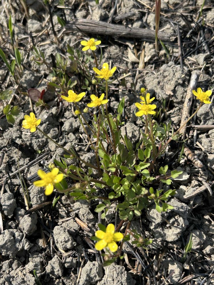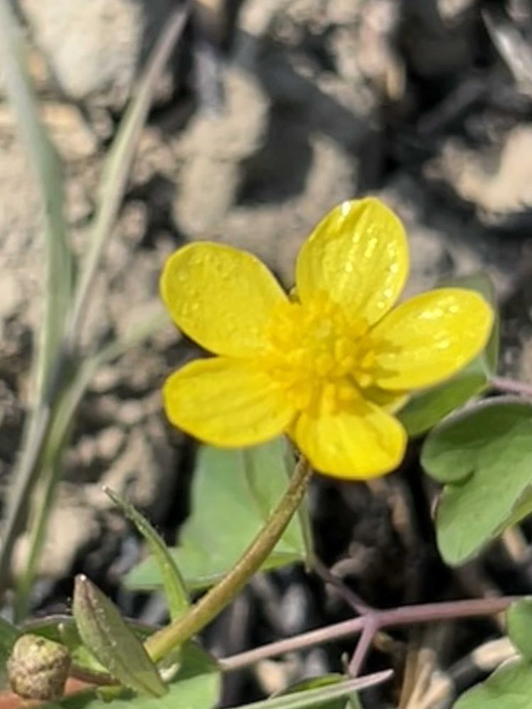 黄色い花‥ウマノアシガタですよね😆キラキラ光っていましたょ✨葉っぱあまり写ってなくてごめんなさい🙏確かに馬蹄形(鋸歯は浅め🤔鋸歯は個体差があるらしいです)でした。