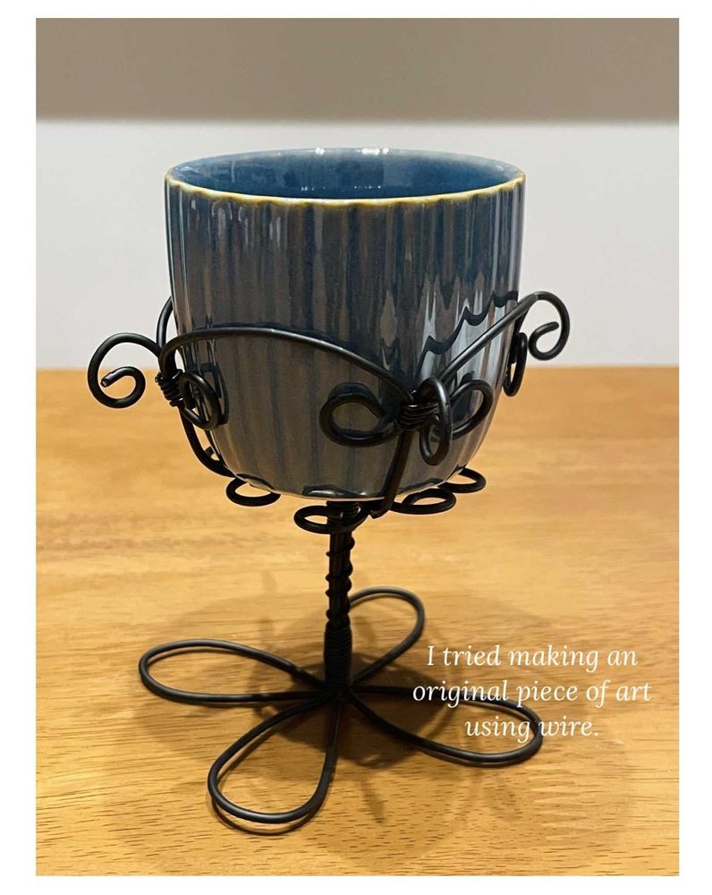 こむこむさんおはようございます。とっても素敵なワイヤーアートですね。もしかしてカップに何か植えるのかななんて思ってしまいました。