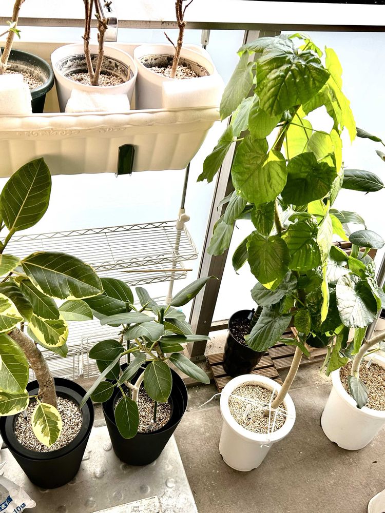 窓際スッキリ😊フィカスチームを半分ベランダに出したら窓際がスッキリした😊フィカスベンガレンシス3号機