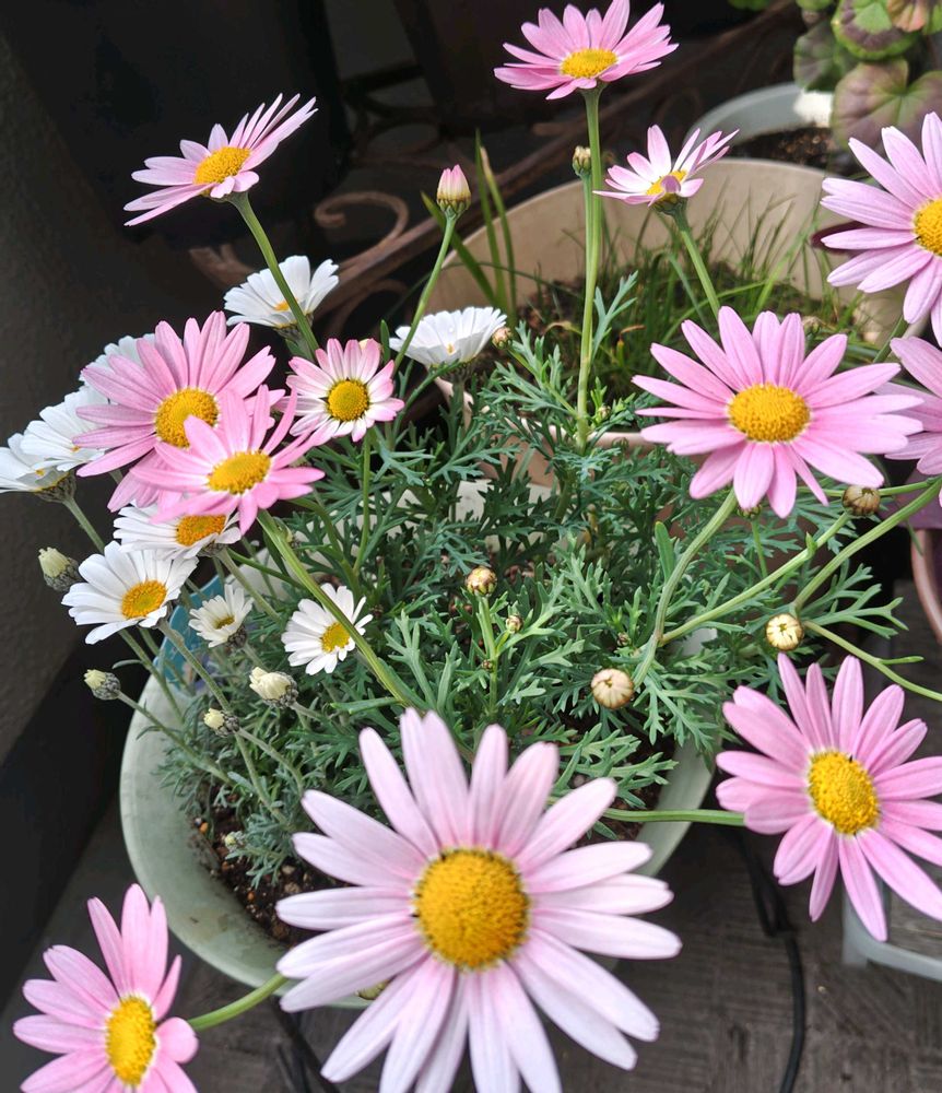 2枚目は、今日のお花のマーガレット。先日植えたばかりで元気です。