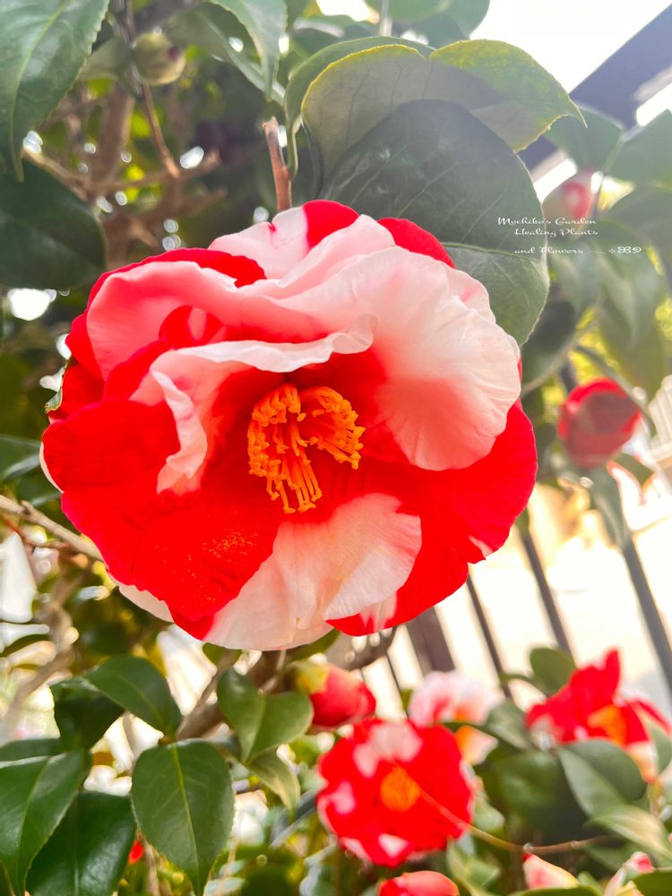 椿も2色見たことないなー新種かな?以前椿実家からもらってきたがパパさんが、邪魔になるから捨てる言ったので向かいの奥さんに、カポックと一緒にあげた。🏠️から見えるから助かるわ。手入れが行き届いていてない、伸びたら伸びたまま40年、時々奥さん母に近いお年でも83才お元気でご主人と仲良く自転車でお買い物。歩くより楽らしい。私は、病院で自転車は、危ないから1日5000歩目指して歩きなさい言われてる。足腰膝痛いけど頑張って鍛えよう。歩けなくな る。今は花粉症ひどく鼻水咳目がかゆい。💊飲んでるのに、体調悪いから多肉寄せ植えしないと思いながら中々出来ない。