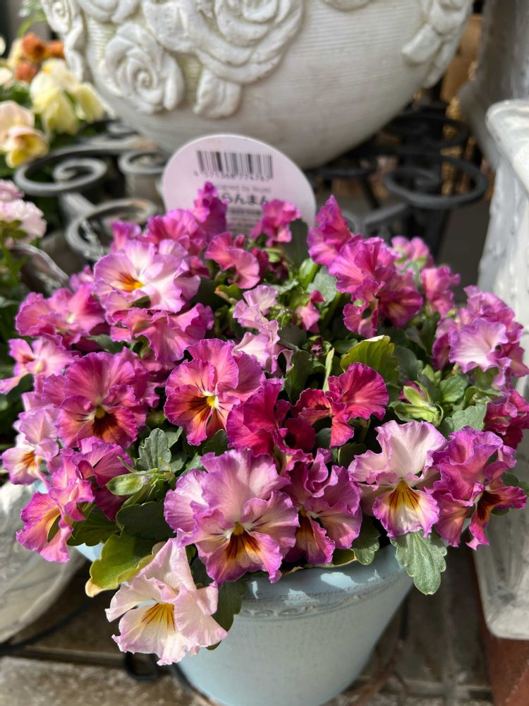 可愛らしいネメシアやデルフィニウム等をお使いになり、春らしい素敵な寄せ植えですね🌸🩵💙