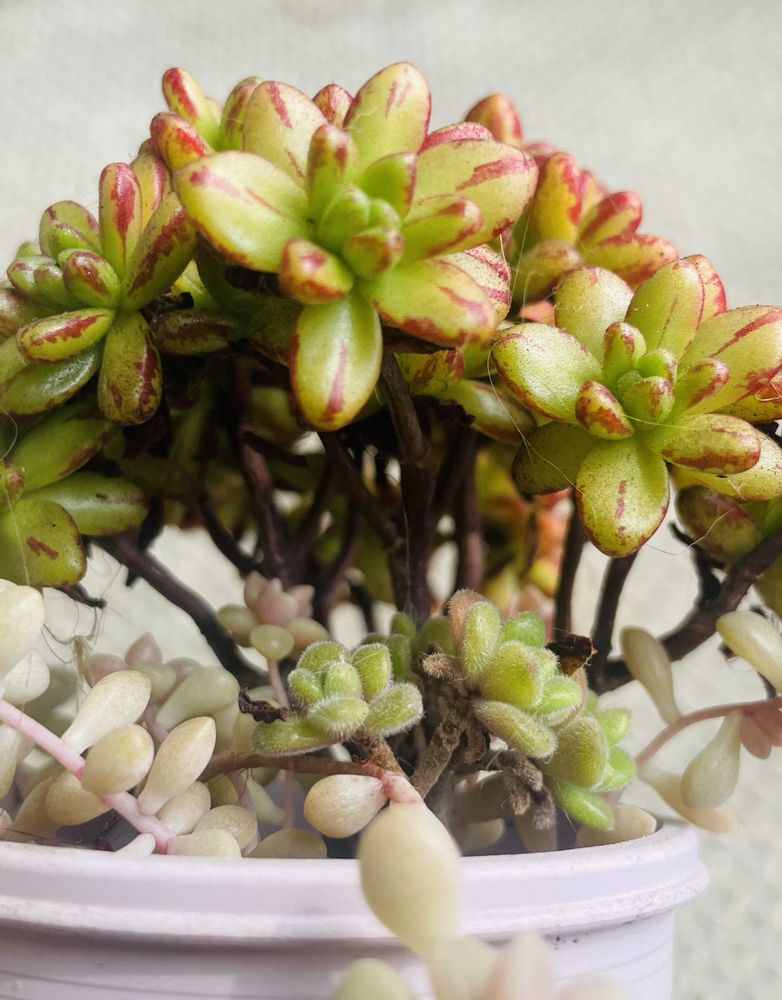 室内と強烈な西日の狭いベランダで多肉を育てています。遮光なしでも大丈夫な子を探しながら置き場確保の為常に奮闘中。 植物全般が好きですが、日差しが強すぎ多肉しか生き残りませんでした😅 動物や虫も好きです。 猫がいるので薬剤ほぼは使ってません。 そしてハダニを蔓延させてしまい夏場は多肉が死にまくる様になってしまいました😱