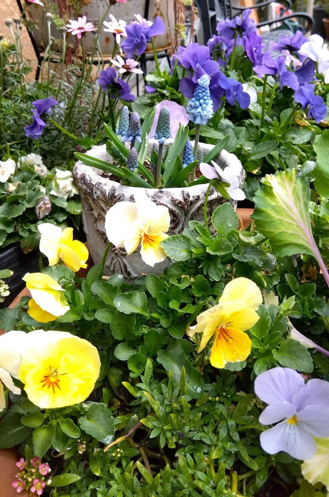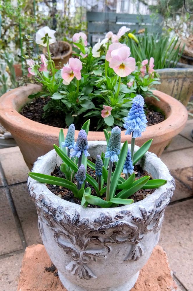 ムスカリ🩵と淡いピンクのビオラお気に入りです🩷