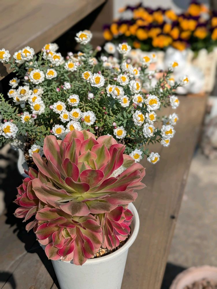 黄色のアリッサムも花かんざしも花真っ盛りだね❣️