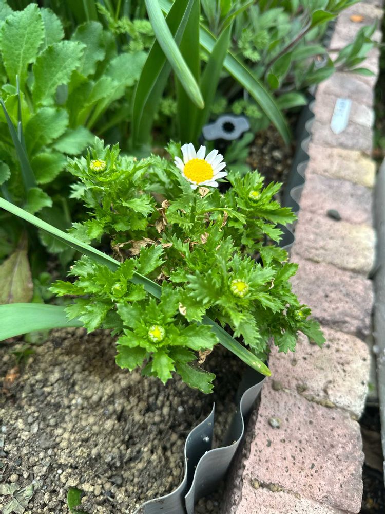 零れ種から咲いたノースポール第一号。大きくなあれ!
