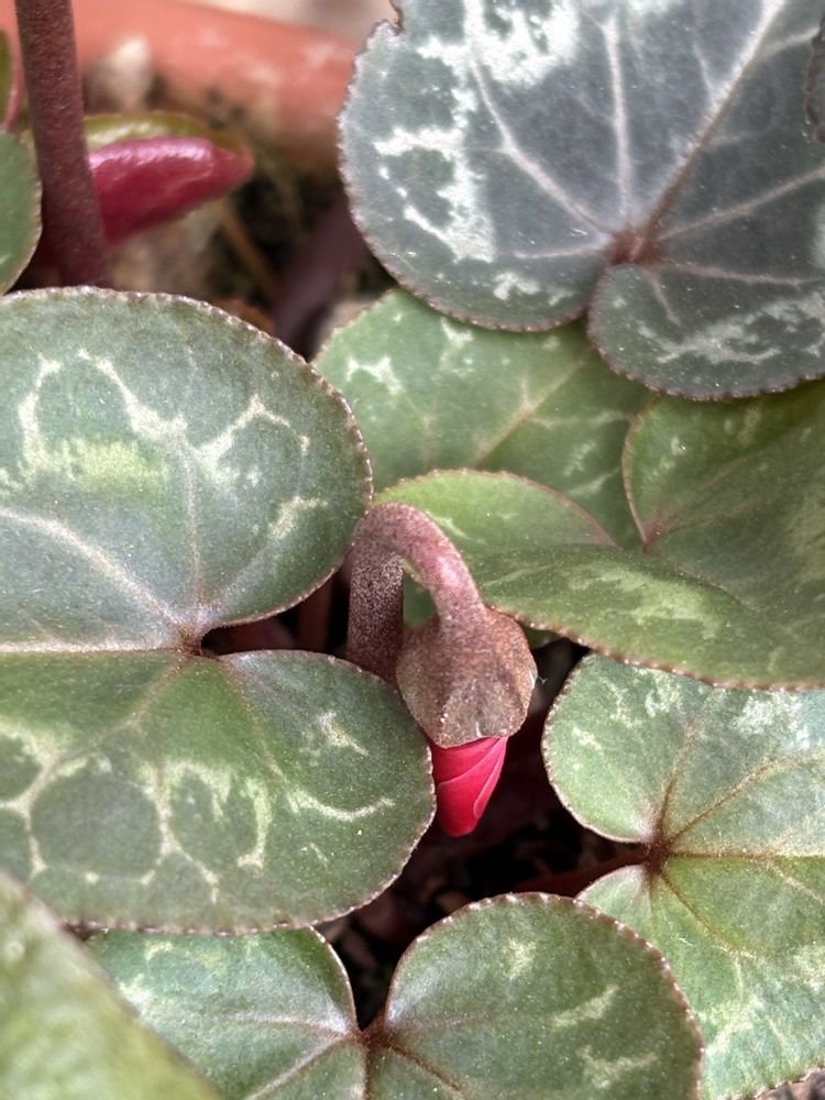 ガーデンシクラメンは葉っぱ少ないのに頑張って花が出てきたよ👏👏👏