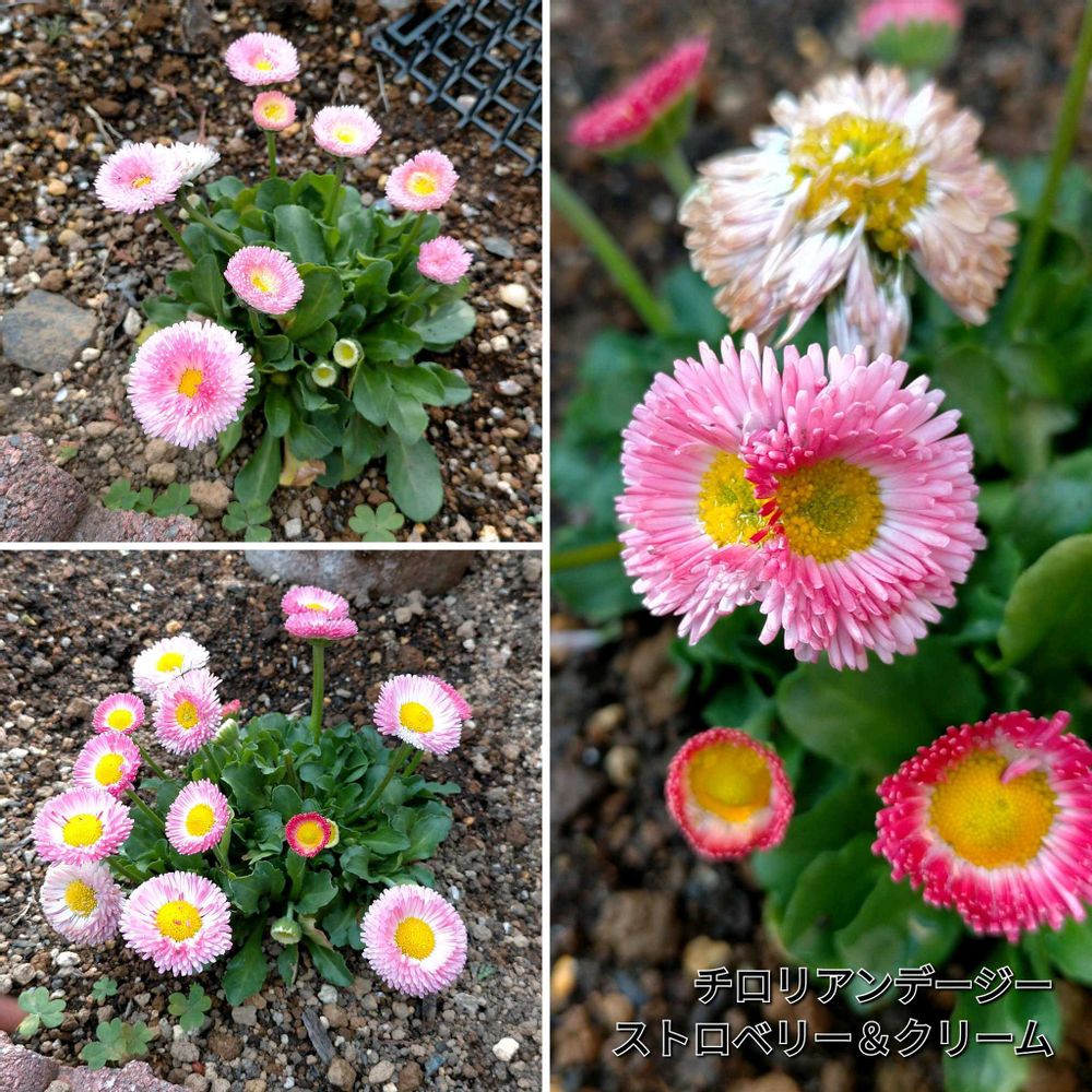 【3枚目】キク科繋がりでチロリアンデージー・タッソー ストロベリー&クリーム。可愛すぎるー😍💕💕 右画像は双子ちゃんだったみたいで、なんだかフクロウみたい?🤭