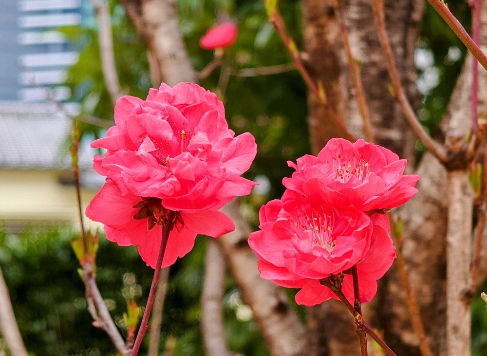 今日の昼休み、近くを散歩途中に見かけたハナモモ。