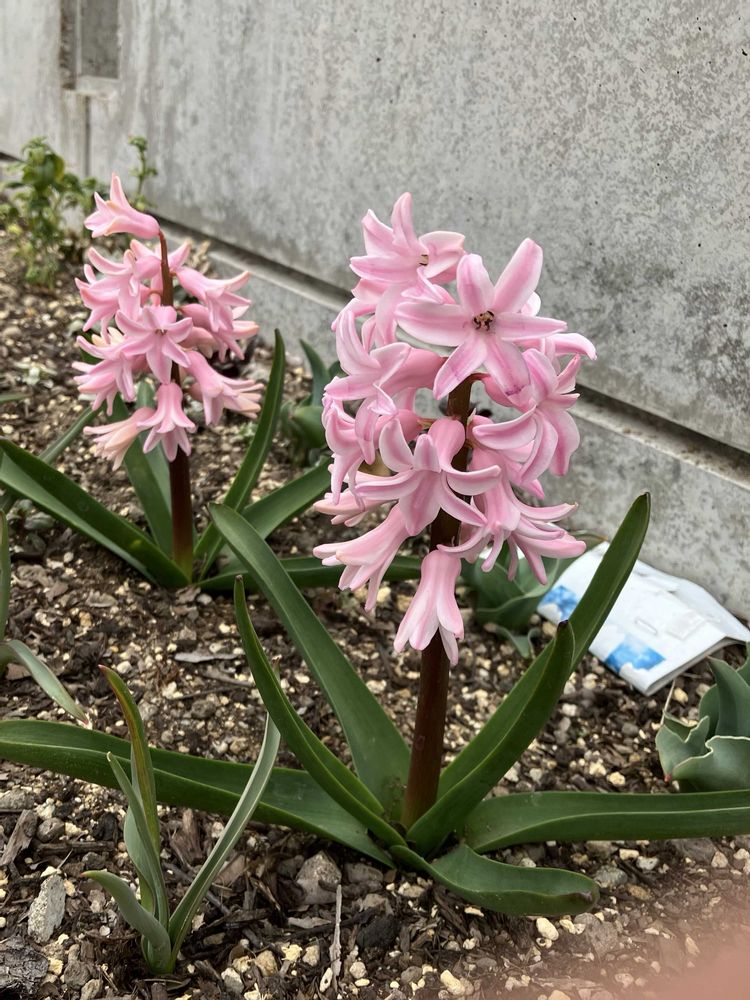 先日の今日のお花の時は固い蕾だったヒヤシンスも開きミニ水仙も沢山咲き出しました