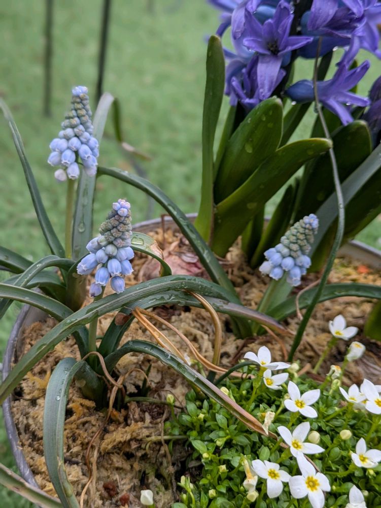 水色のムスカリとひなそうと寄せ植えかわいいねー😍