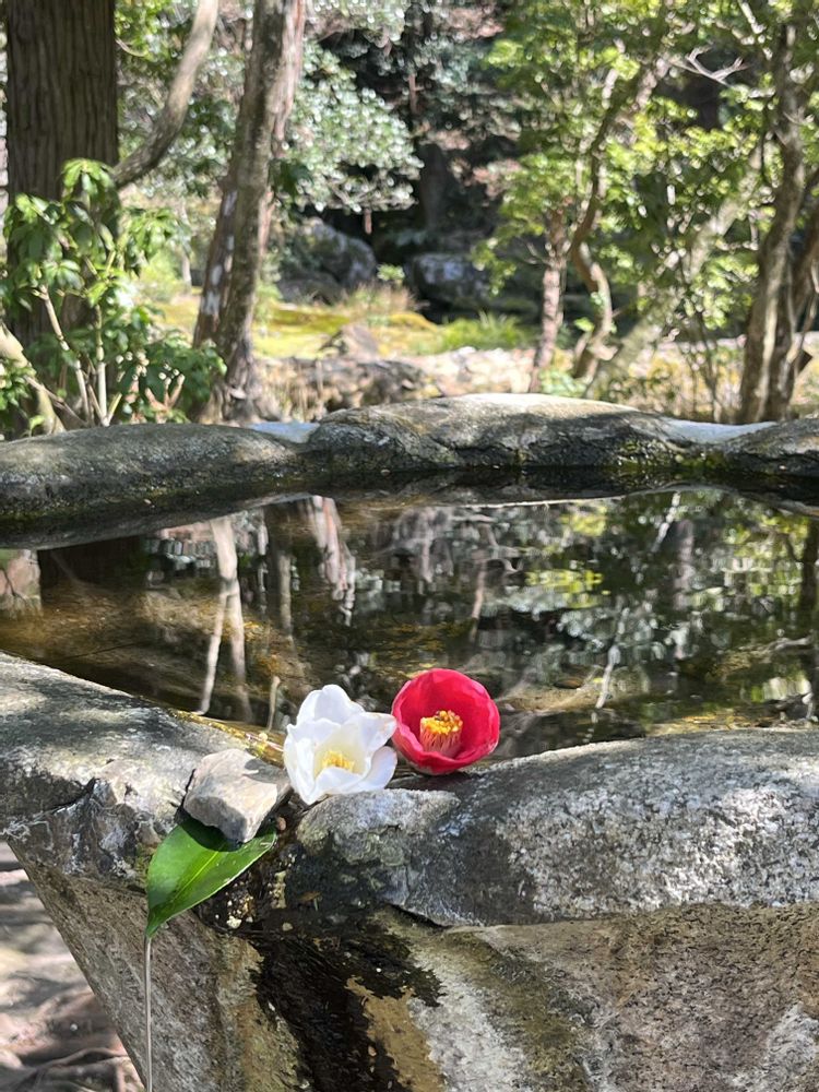 手水台の椿 美しいですね〜🤍♥️😊