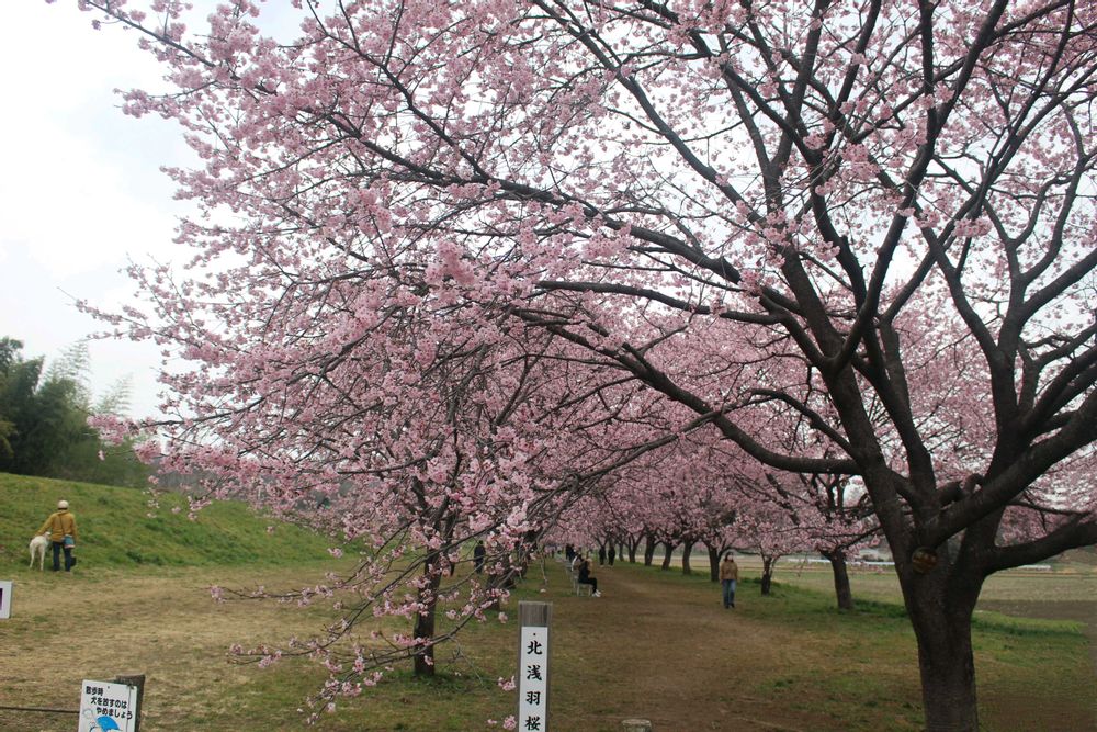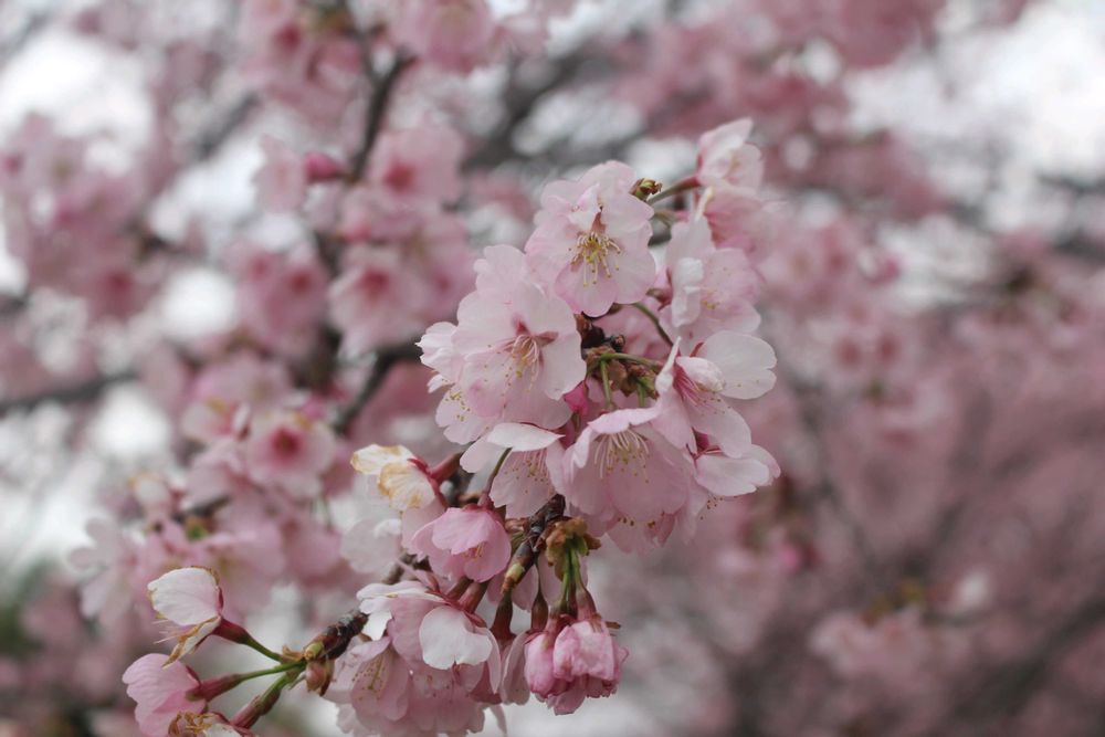 安行寒桜です。ソメイヨシノより一足先に咲く種類です。曇り空ですが、今日が一番の見頃かと思いました。