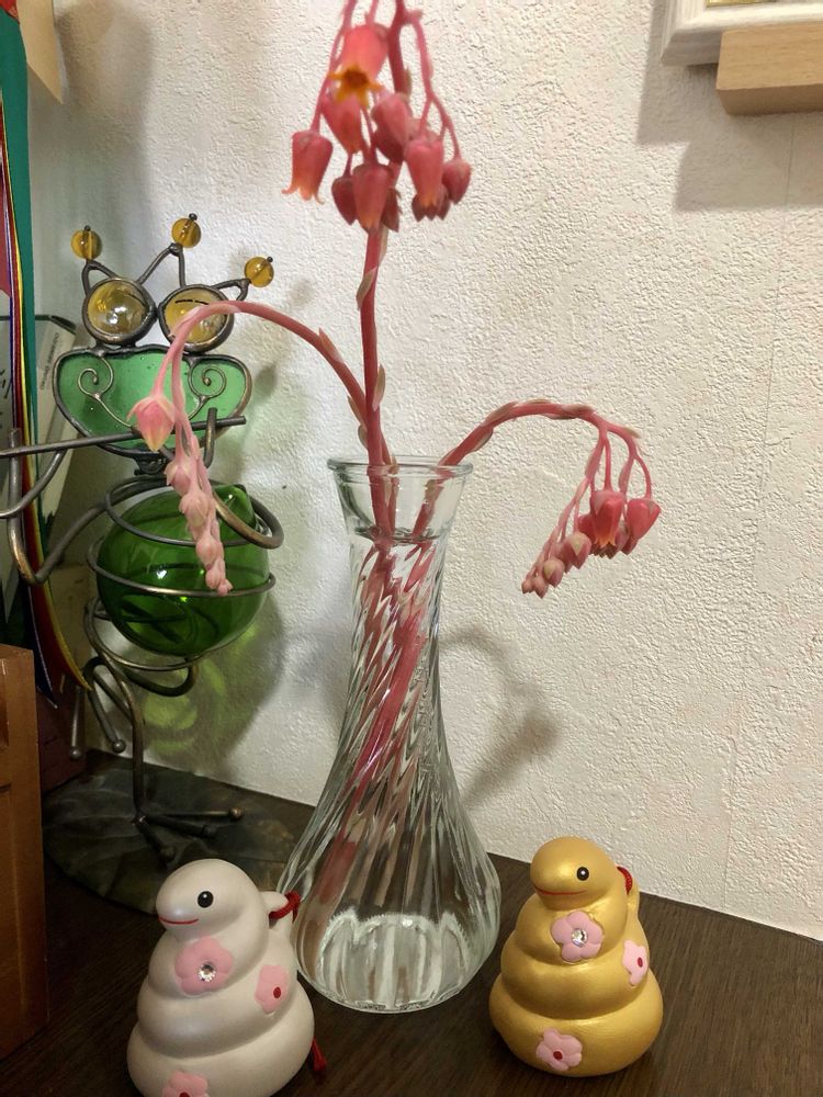 多肉植物の花芽が長くなって来たので✂️切って花瓶に挿してみました🌸