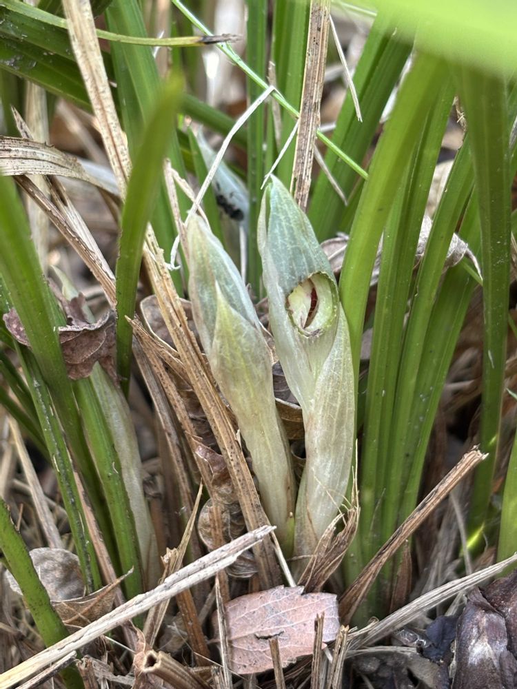 5️⃣昨日の我が家の春蘭も目を覚まそうとしています。2025.3.24