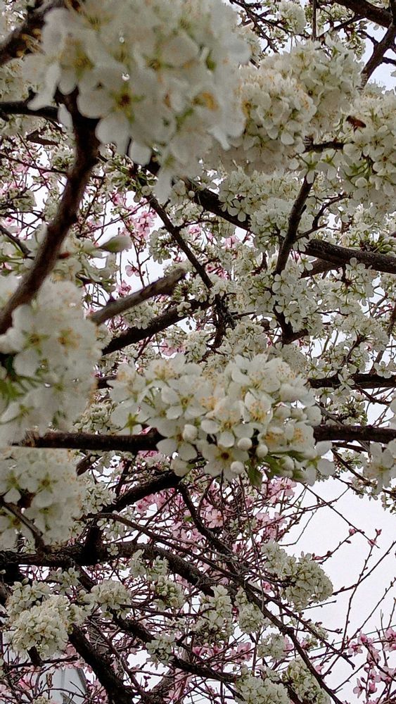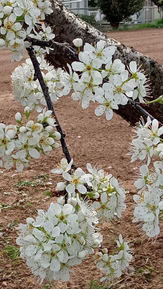 アーモンドの花を毎日見に行くうちに、すぐ隣にあるスモモ(多分ソルダムではないかと)の木があっという間にアーモンドの開花スピードを追い越して、満開になっていました。硬い緑の蕾→白色が見える蕾→満開になるまで何日かかったかしら、というくらい速いスピードでした。