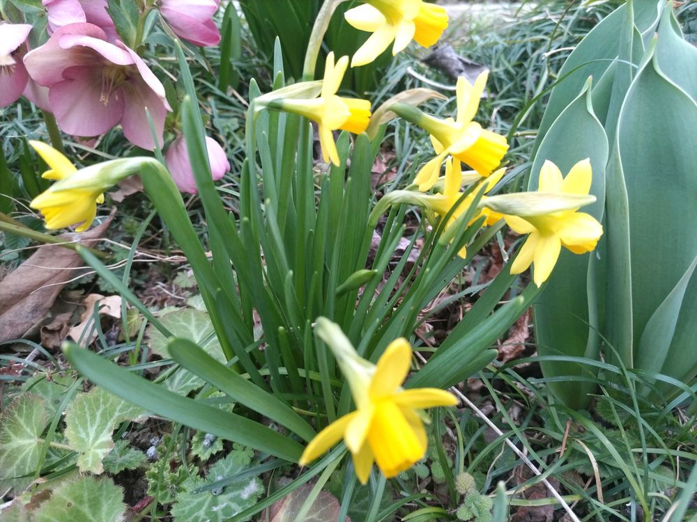 ラッパスイセンも、俯いて咲いてるものも多いですよね。