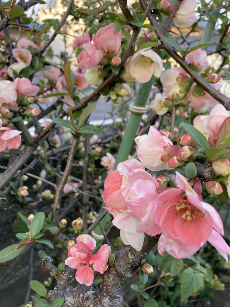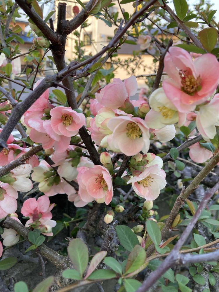 実家 ボケの花🌸が咲き始めました
