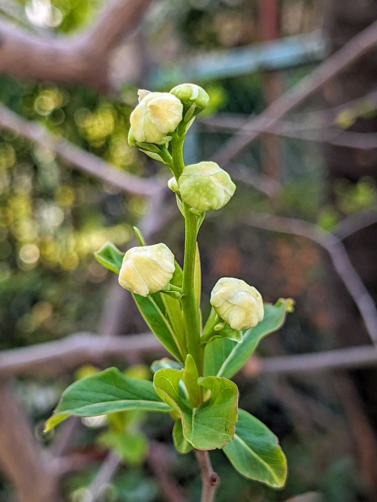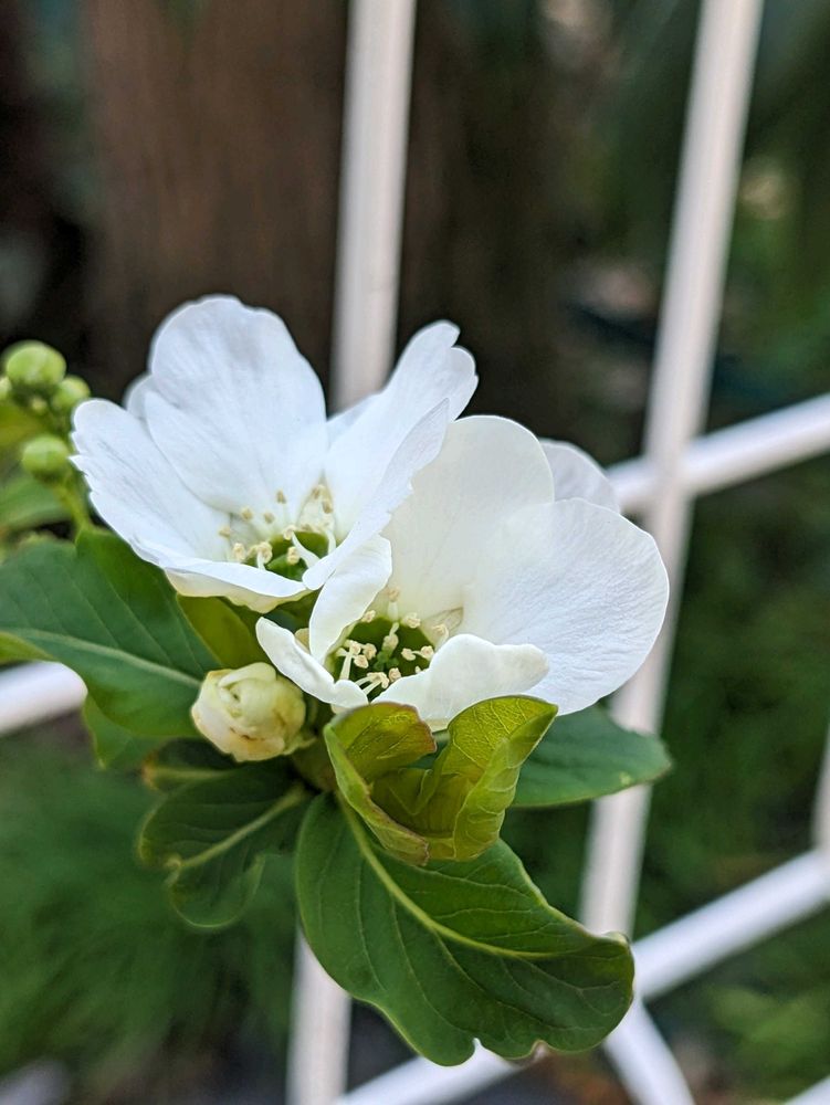 爽やかな白いリキュウバイの花、朝に見せて下さいましてありがとうございます、一日のスタートが楽しいです🥰