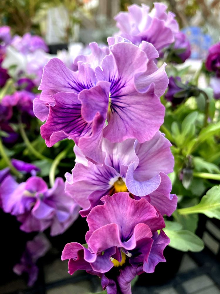 パンジー・きものは艶やかな色彩のフリル咲きパンジーで、ゆるやかにウェーブした花姿がとても上品で美しい