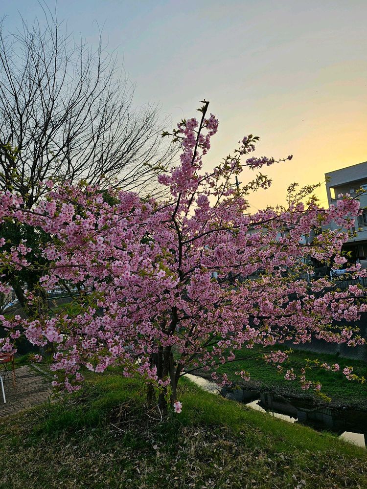 河津桜も西陽に照らされて優しい感じ🌸⁾⁾