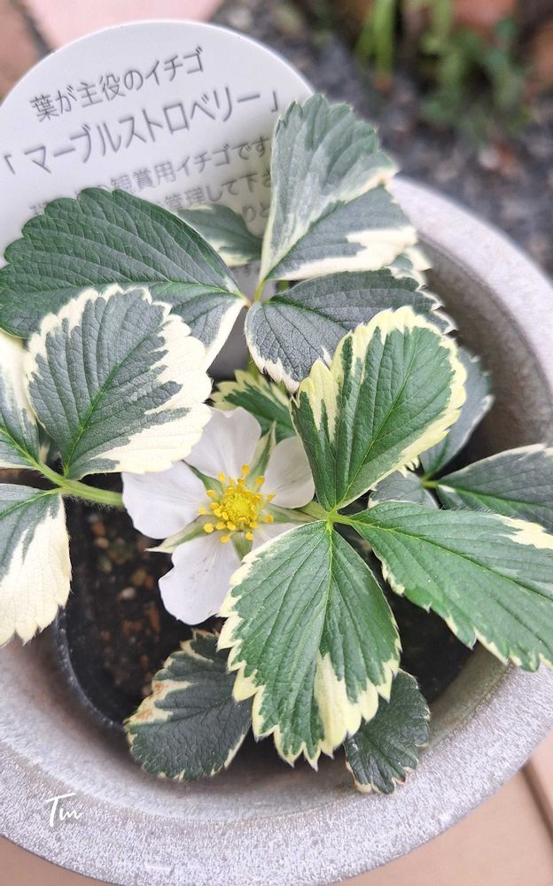 イチゴの斑入り葉💚🤍可愛らしいですね💞