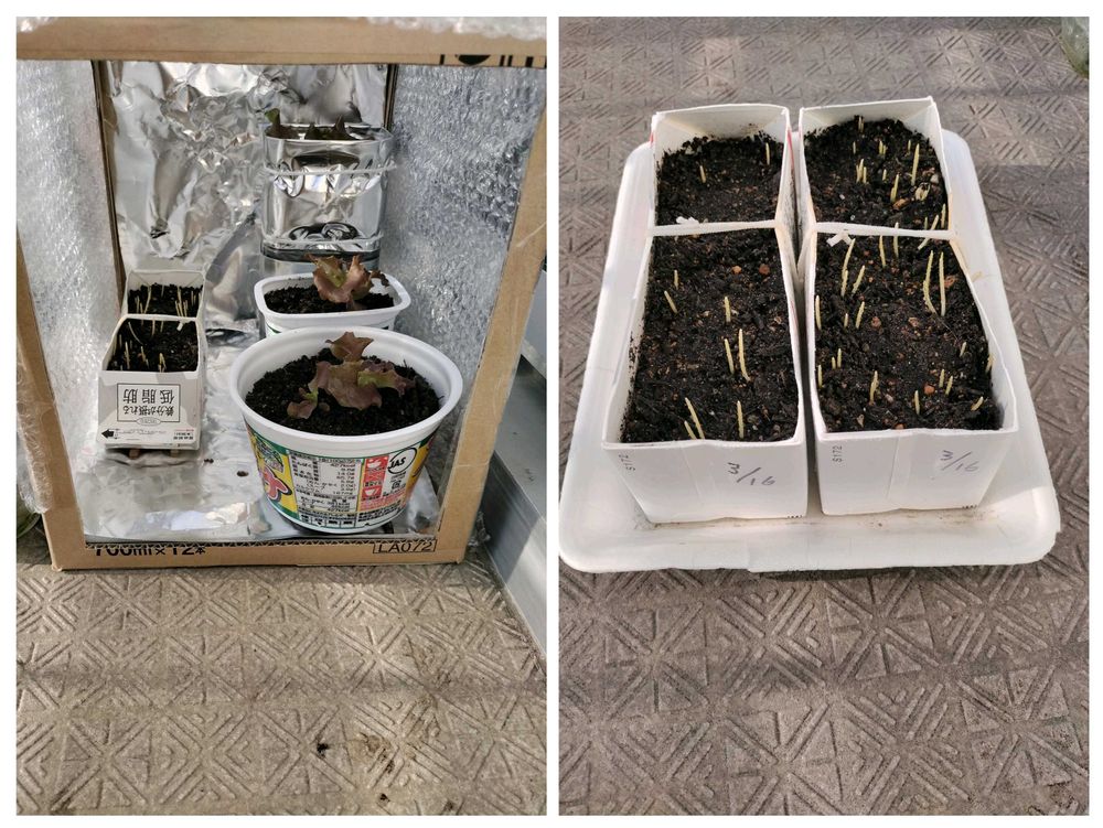 発芽の少ない方はコタツへ戻して、2日後に簡易温室へ移した。