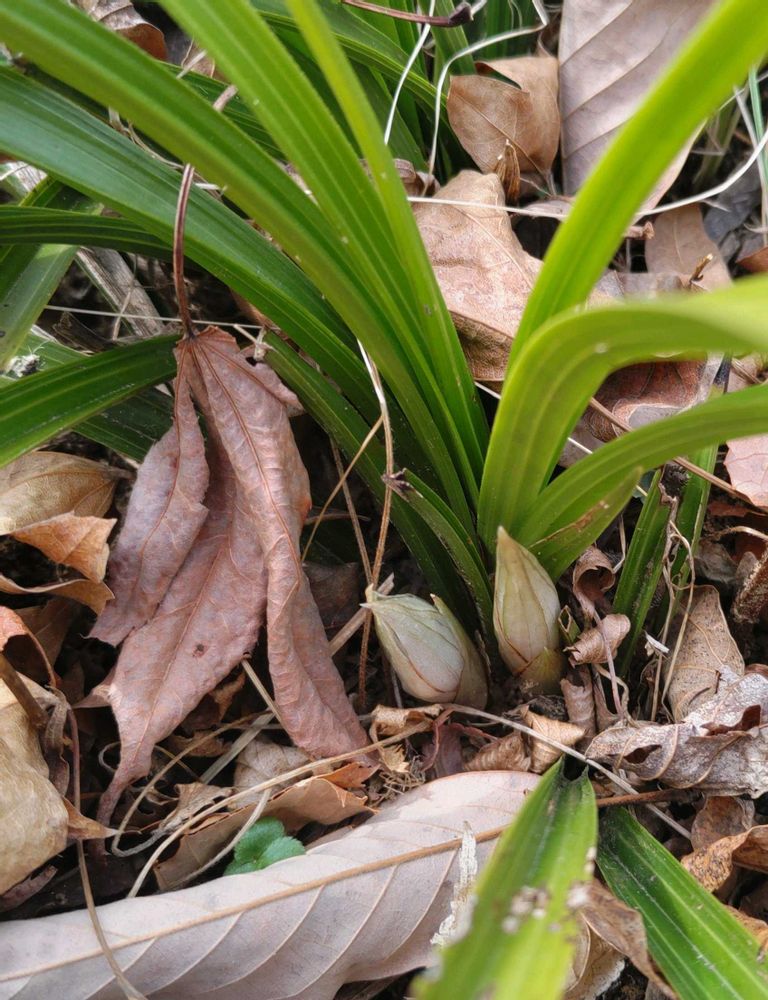④落ち葉をよけたら、春蘭に蕾が、、楽しみ💕